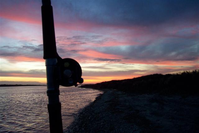 We pitch camp and decide to rock hop the jetties. I toss plastics and Austin soaks shrimp. Austin manages to catch a few hardhead catfish and I only have a few taps (short hits) on several different shrimp tails. Slow fishing and we note the Extreme Coast Fishing crew are camped and soaking baits with big Penn Senator shark rods on the sand just North of the jetty rocks. Slow going this evening between both parties but the water is absolutely clear and beautiful with a full moon in store. We decide to build a fire, eat Pope & Young deer sausage and watch the sunset. I change one long rod from a Newell 338J (Penn 4/0 size) and rig it up with the Ambassadeur 7500 CT Big Game reel (long caster) and blast a long cast out into the Port Mansfield channel. My bait is a cut bait whiting offering. I get a good bang and set the hook only to have my rig snag in the channel and breaking my entire leader with fish the fish hooked up. I guess it’s not to be today and we opt to watch the moon rise around and spend some time around the campfire.