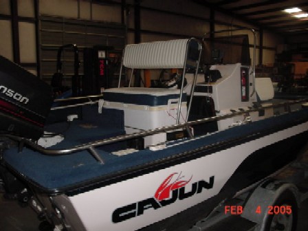 Now the Cajun is a boat I would be interested in for sure. To heck with soaking your butt in a bass boat, I'd rig this thing up for some bow casting action big time. That bow looks huge and I see a mount post for a seat up there. Most importantly, that boat will hold a couple of good sized coolers. Modify one cooler for a live bait well with oxygen circulation. I would add a poling platform over that back engine and a long poling rod mount somewhere for the flats. Shoot gators, bowfish, catfish, bayfish and inshore and bass fish all rolled up into one boat. Sturm that's the boat right there for you. Get it and we can head to Port Mansfield to see whats biting near PINS?  |