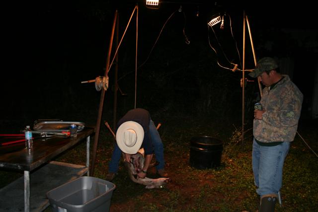 PQ strings his doe up on the meat pole as Simek lends a hand.