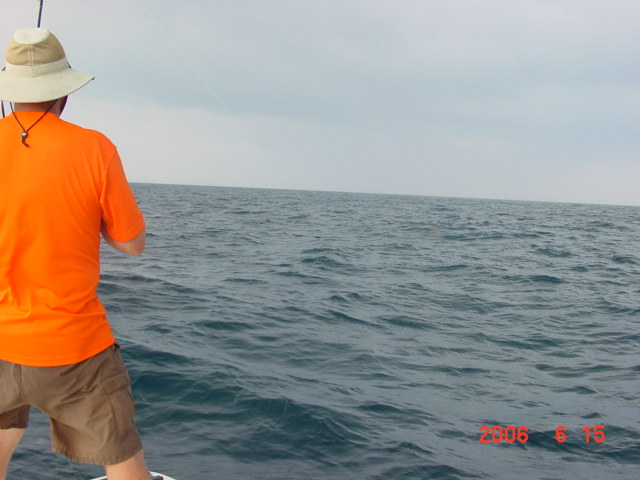 Everyone was excited looking for more but they never showed up. Threw the free line out and kept fishing for snapper. Dan cought a snapper and while cranling it up said "it was a good snapper", I asked "did it get off" he replied "no" I turned and looked ---